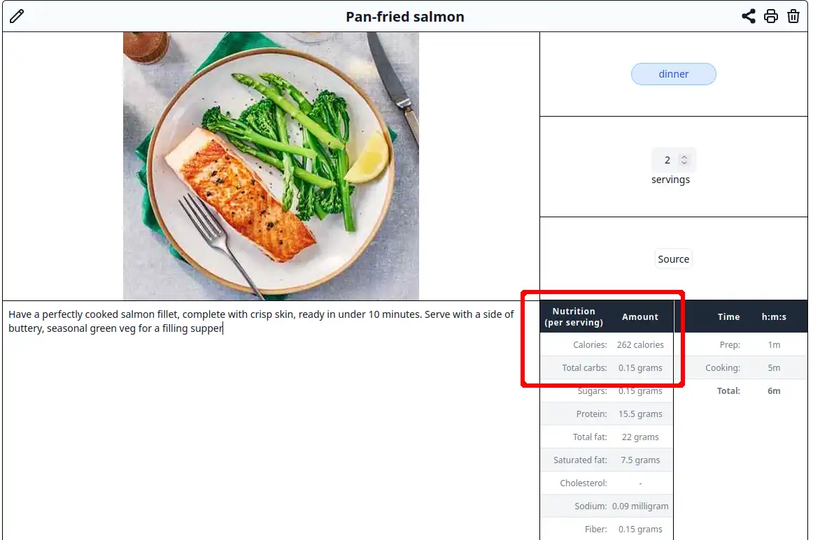 Les informations nutritionnelles sont désormais affichées par portion lors de l’importation d’un site Web dont les informations nutritionnelles sont fournies par portion plutôt que par 100 g.
